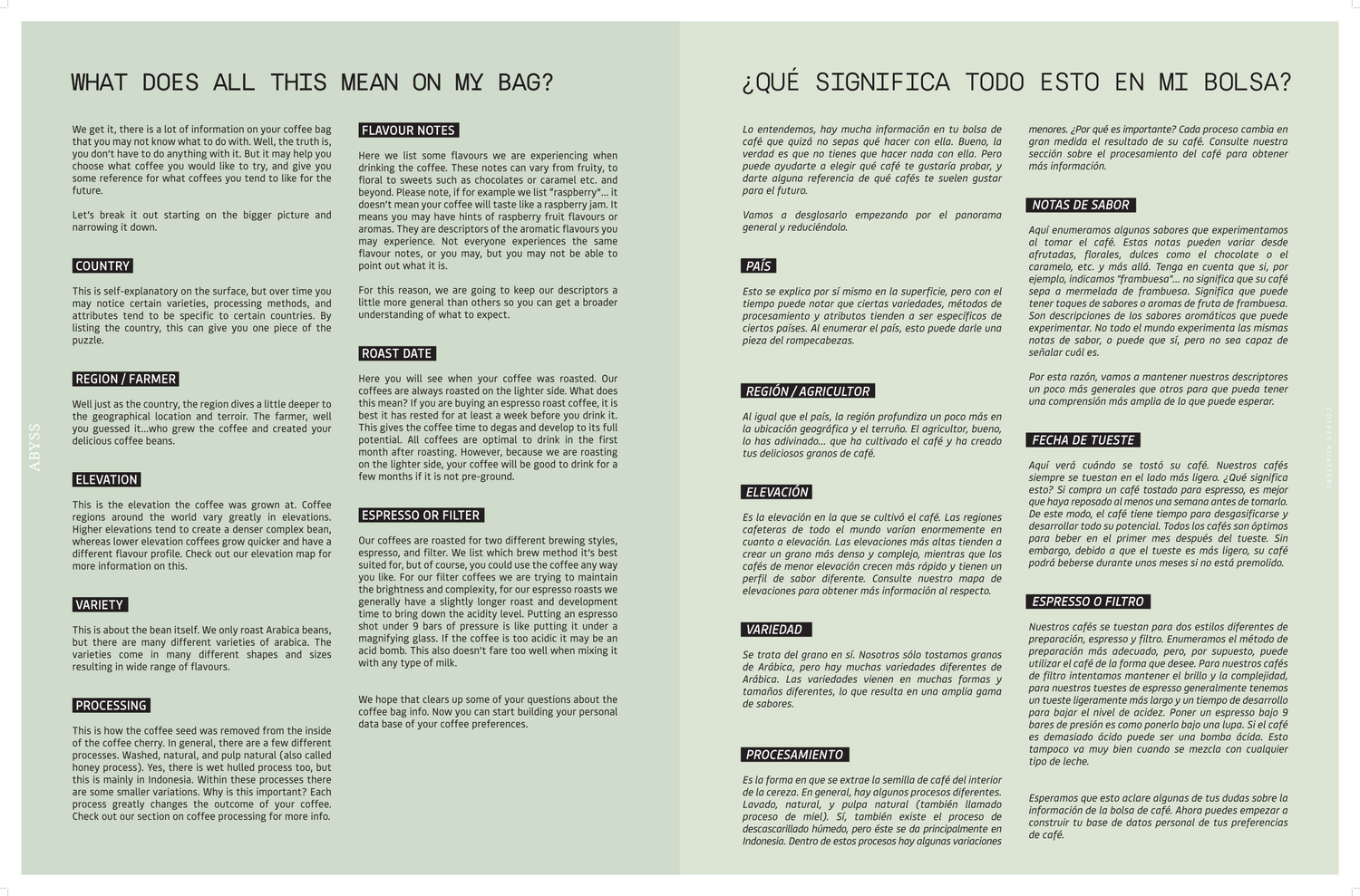 We get it, there is a lot of information on your coffee bag that you may not know what to do with, well, the truth is, you don’t have to do anything with it. But it may help you choose what coffee you would like to try, and give you some reference for what coffees you tend to like for the future.
